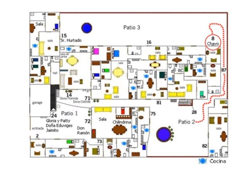 En un plano arquitectónico creado por un fan de la serie, se muestra desde una vista aérea cómo es la vecindad con el tercer patio. Ahí podemos ver que el departamento número 8 esta justo a final del callejón y que el Señor Hurtado era el vecino del Chavo.