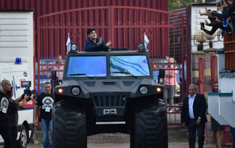 Maradona fue un amante de coleccionar lujosos autos en donde desfilaban marcas como Ferrari, Rolls Royce, BMW, Mercedes Benzs pero uno de los autos en forma de tanque de guerra que tuvo el crack argentino fue el que utilizó en el 2018 en Rusia, se trata de una Hunta Overcomer todo terreno capaz de atravesar profundidades de 2.6 metros de altura y alcanza una velocidad de 70 km/h.